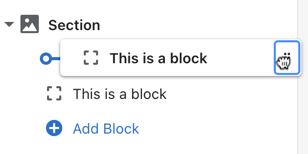 Under Product overview, click (+) Add block and select Stock level indicator. Use the drag-and-drop handles ⋮⋮ to re-order blocks.
